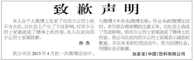 而这并非加多宝首次触碰原则红线。此前,加多宝曾因关联营销内容涉及邱少云烈士,触碰《英雄烈士保护法》红线,被舆论痛批“消费英雄、践踏历史记忆”,最终公开致歉,承担了相应法律责任,两次事件叠加不禁让人对加多宝的企业价值观进行审视与质疑。