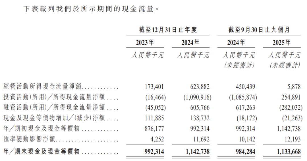 另一方面,绿联科技的经营现金流出现剧烈波动甚至断崖式下跌。招股书显示,公司经营活动现金流净额从2024年的6.24亿元骤降至2025年前三季度的587.8万元。公司方面给出的解释是受全球消费电子需求疲软、存货积压与应收款占用加剧影响。