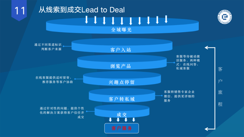 从全域曝光吸引他入站,到浏览时提供适时客服协助,再到引导留资、转入私域进行深度沟通,最后通过个性化解决方案促成成交。 每一步的体验,都决定了下一站他是否还会与你同行 。