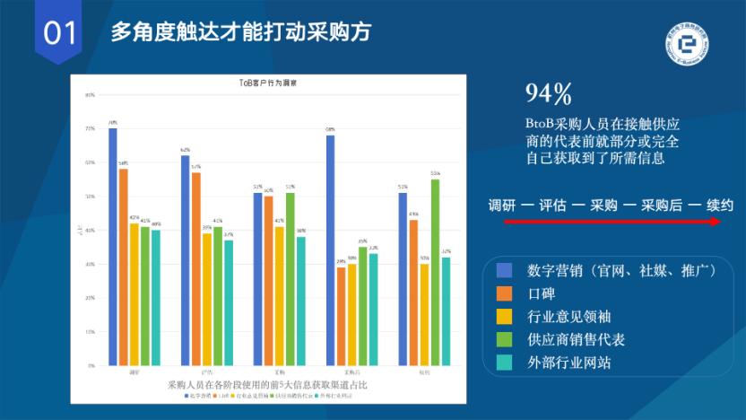 调研数据显示,94% 的 ToB 采购人员在接触供应商销售前,就已通过多渠道自主获取所需信息。