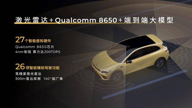 辅助驾驶方面,零跑Lafa5搭载含激光雷达在内的27个高精度感知硬件与高通8650芯片,支持端到端辅助驾驶,可实现高速领航辅助(NAP)、通勤领航辅助(CNAP),可以不依赖高精地图,实现领航辅助驾驶,未来将通过OTA实现城区领航辅助。