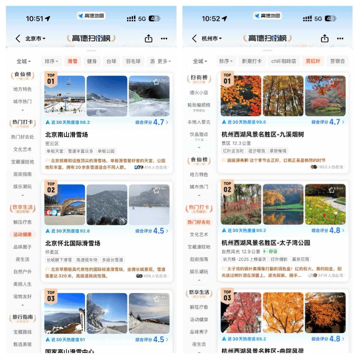 新推出的时效动态榜单,是全球首个基于季节与地域特征自动演化的生活服务榜单,就像“一张会呼吸的活榜单”,数量无上限:春季踏青、夏季避暑、秋季赏红叶、冬季滑雪……榜单随四时流转智能更新,目前已生成约6553个时令榜单。