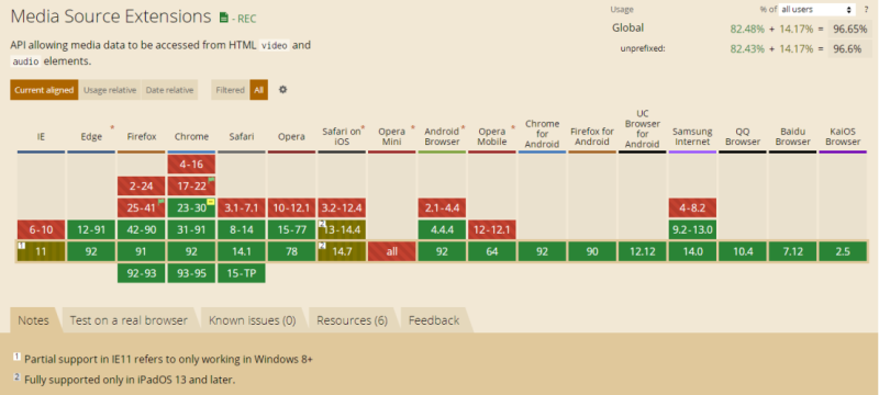 特别需要注意的是:MSE在iOS下基本是不能被支持的,只能在部分iPad设备下使用,所以如果要考虑支持iPhone等移动设备,该技术有很大局限性。