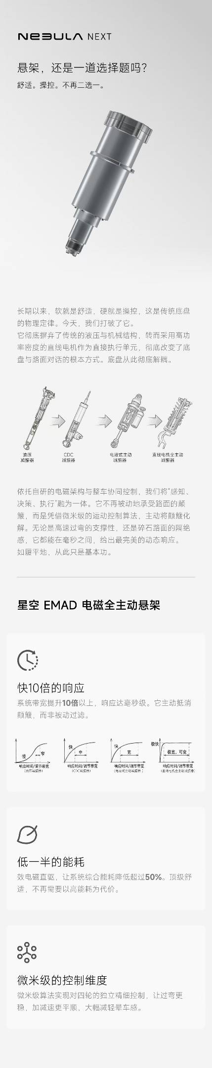 而 EMAD 电磁全主动悬架的逻辑是凭借微米级的运动控制算法,主动将颠簸化解。将“感知、决策、执行”融为一体。