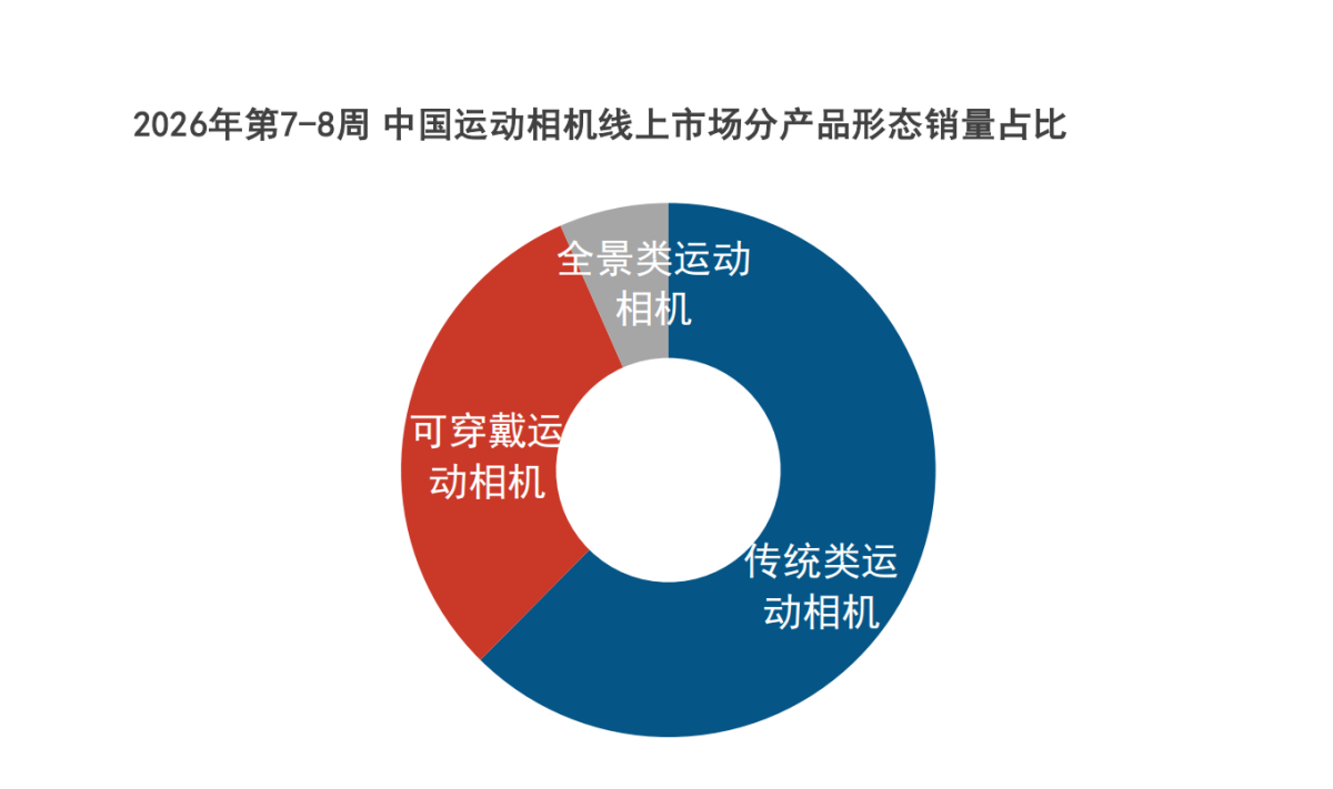 从结构看,传统类运动相机依然是基本盘,销量占比在六成以上。可穿戴类在春节期间冲高到三成左右。全景类在6%左右。