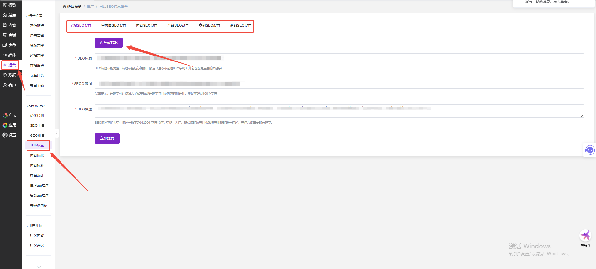 (营销枢纽测试账号:TDK设置)