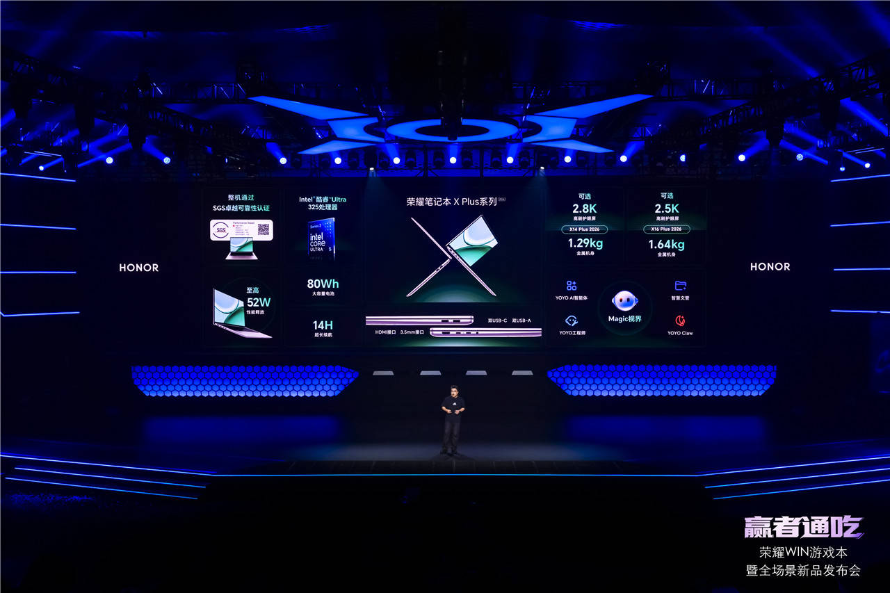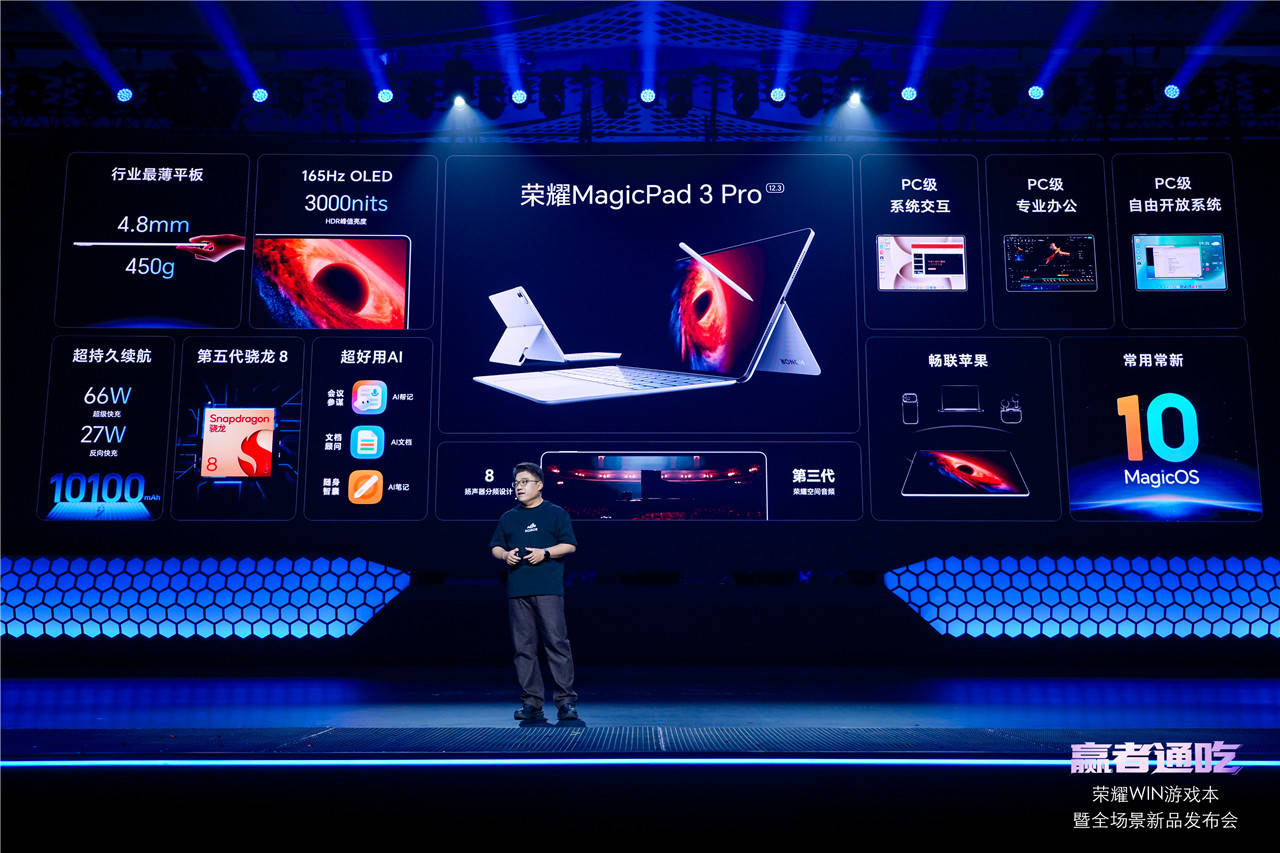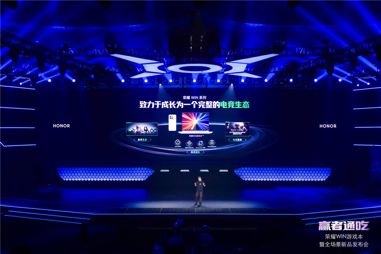 荣耀WIN系列自诞生以来,便以赢者通吃为愿景,致力于构建一个覆盖硬件、体验、赛事、服务的完整电竞生态,打破单一产品局限,为不同层级玩家提供全场景、一体化的电竞解决方案,推动电竞体验向更专业、更全面的方向升级。