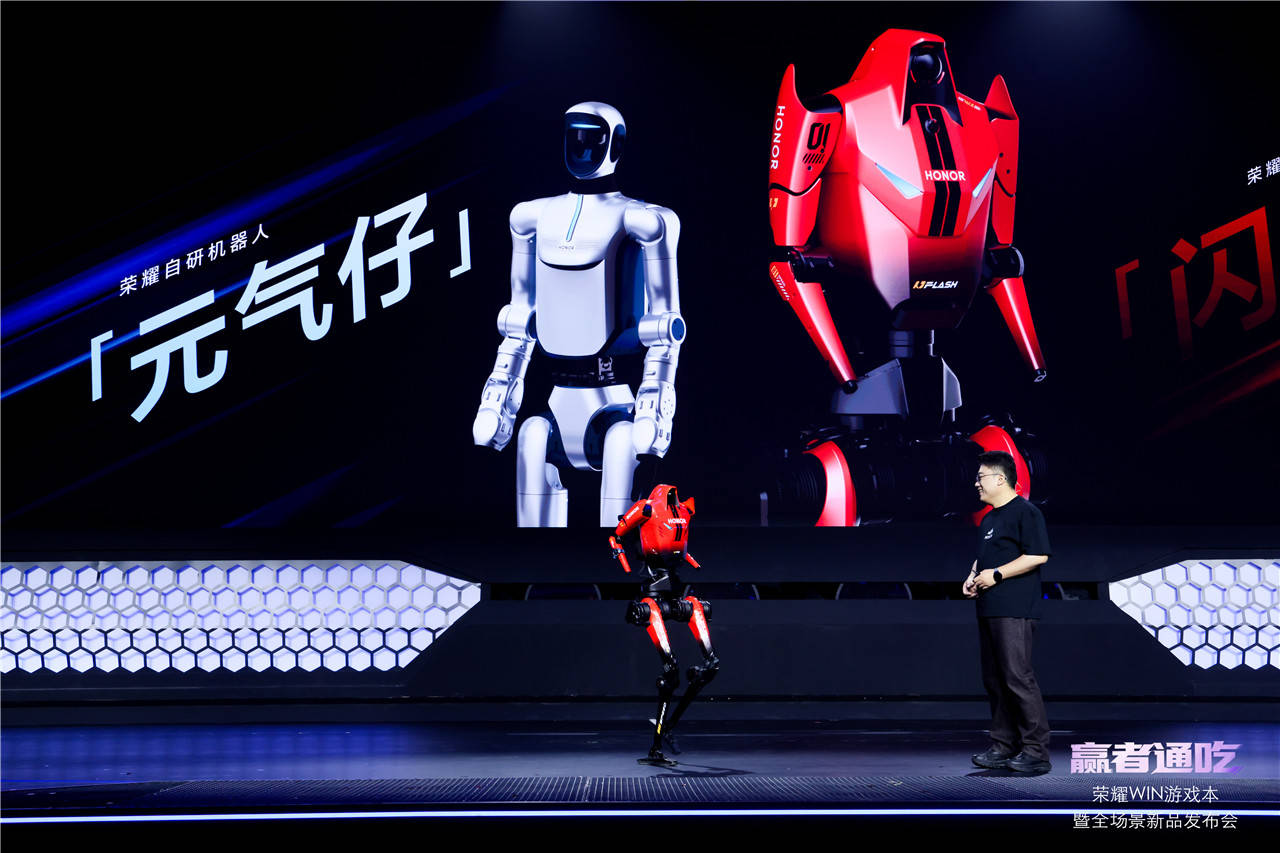 荣耀人形机器人闪电惊喜亮相,成为本次发布会的一大亮点。闪电在AI仿真、架构设计、能量管理等领域的核心技术,与荣耀WIN游戏本的散热架构、性能调校、功耗控制等技术同源,均依托荣耀深厚的底层研发能力。