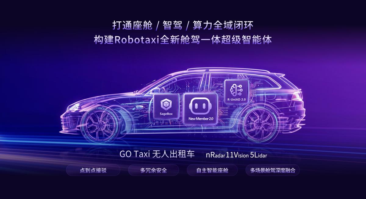 SenseAuto Go 依托生成式智驾 R-UniAD 2.0、New Member 2.0 及 SageBox 千机智盒三大核心技术支撑,构建舱驾一体超级智能体,不仅可实现 L4 级自动驾驶的点到点高效接驳,更将智驾的安全可靠与智舱的主动交互、情感陪伴深度打通,带来全场景连贯的智能出行体验。