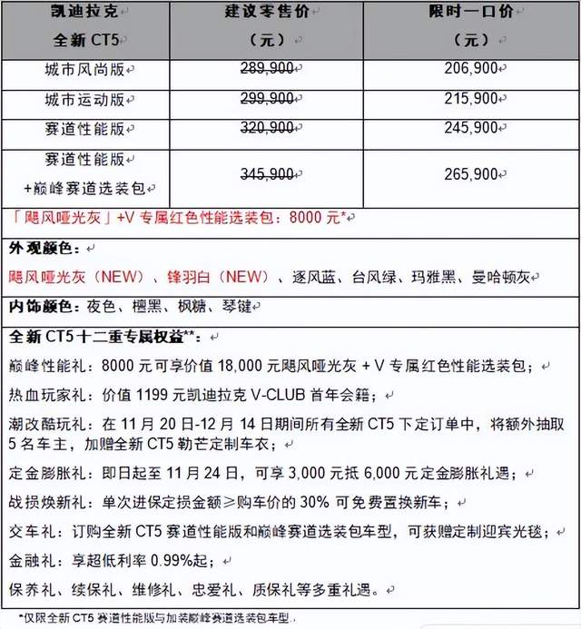 据「TMT星球」了解,此次全新CT5发布了V专属性能车色「飓风哑光灰」及V专属红色性能选装包:包括专属Brembo V标涂装红色高性能卡钳、赛道专属红色钥匙等性能装备。同时,用户还可享受12重丰富豪礼,包括以8000元解锁价值18000元热血装备的巅峰性能礼、限时3000元抵6000元的定金膨胀礼、限时赠送价值1199元V-CLUB会籍的热血玩家礼等。