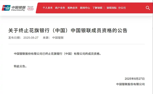 近日,中国银联发布公告称,已终止花旗银行(中国)有限公司的成员资格。这一消息引发广泛关注,意味着花旗中国将不再通过银联网络开展支付业务。