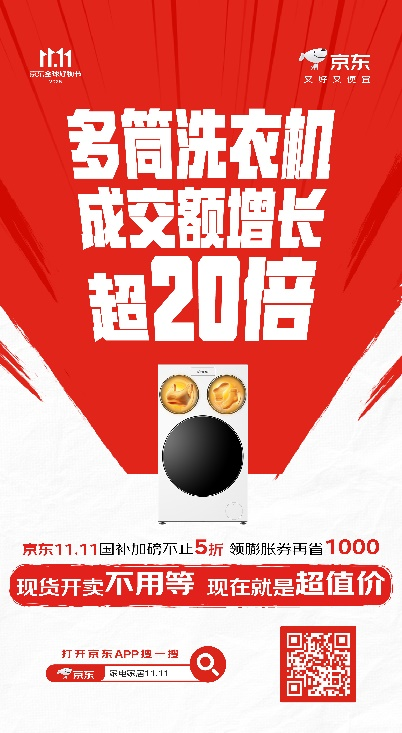 家电家居家装消费升级趋势显著,高端化、智能化产品受青睐。其中,多筒洗衣机成交额同比增长超20倍,展现出消费者对高品质生活的追求。现在下单购买家电好物,还可享受国补加磅不止5折、领膨胀券再省1000元等重磅优惠。