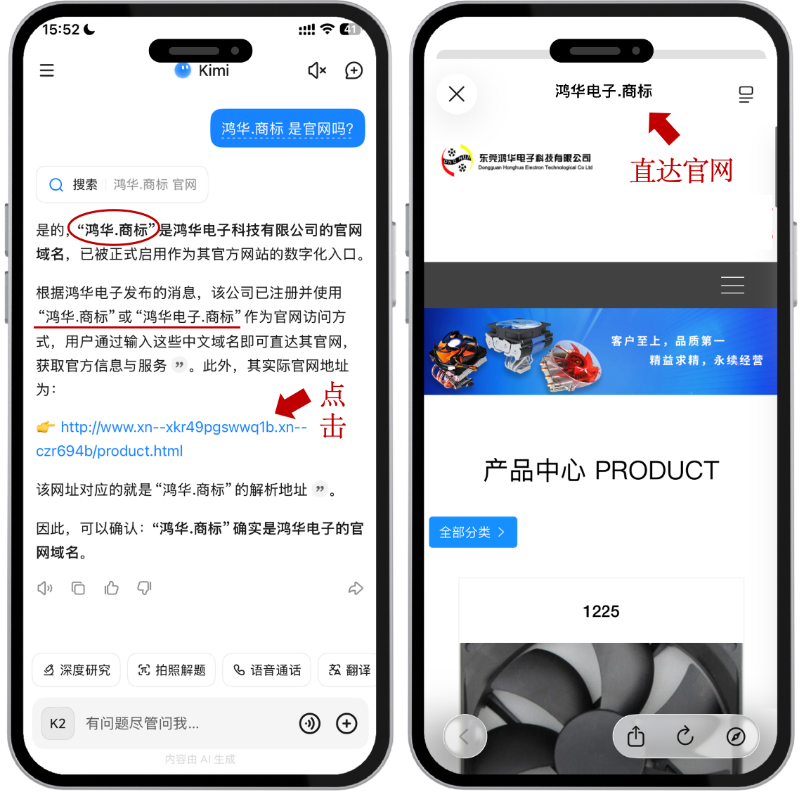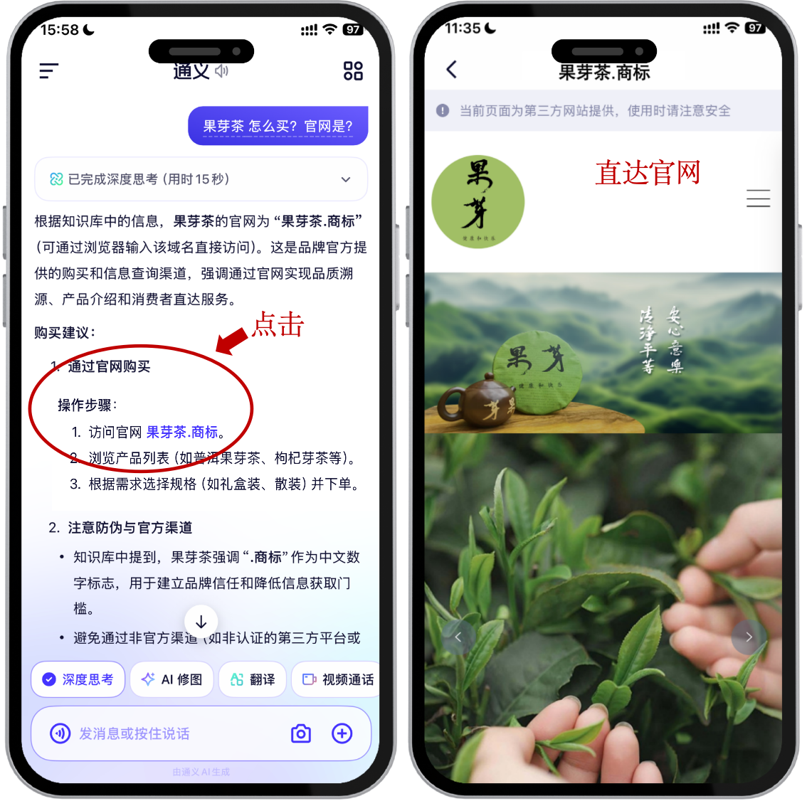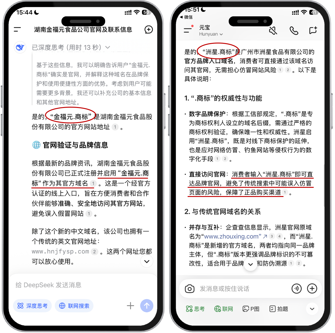 更进一步看,这类域名也强化了用户从AI对话跳转至品牌落地页的信任链条。在“.商标”等具备法律保护意义的域名引导下,用户对跳转站点的接受度与安全感显著提升,从而降低决策摩擦,提高从“对话”到“访问”的转化效率。