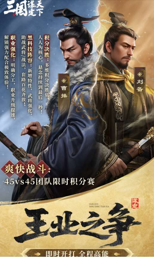 《三国:谋定天下》的设计理念就是让玩家告别“肝氪”,轻松享受游戏。它从各个方面为玩家考虑,减少了不必要的负担,让大家能更专注于策略的谋划。近期这款游戏还开启了全新45V45创新玩法“王业之争”的全面测试,该玩法未来将在全问鼎赛季上线。
