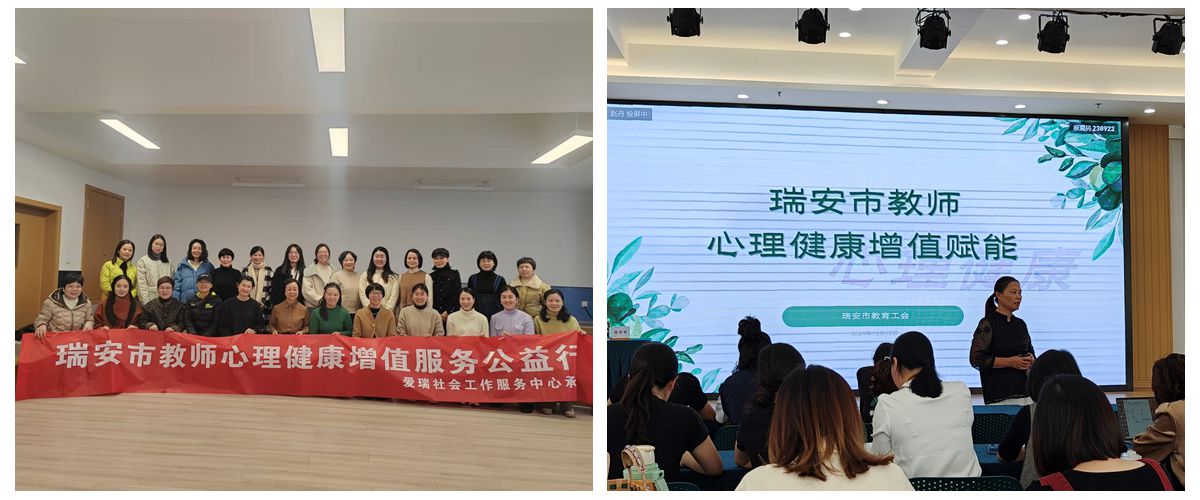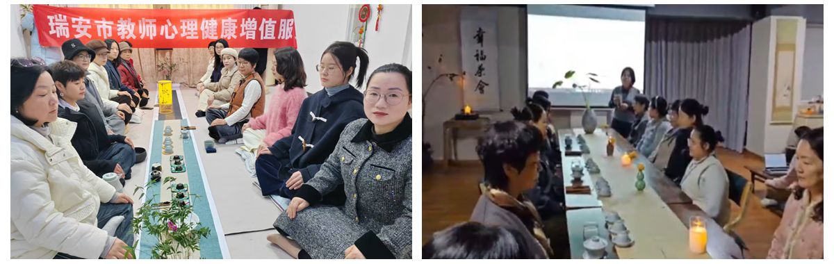 在教育改革持续深化的当下,教师心理健康已成为影响教育质量的关键因素。为促进教师心理健康素养,瑞安市教育工会、装备中心携手人寿、太平洋、大地、平安四大保险公司成立“瑞安市教师心理健康增值服务”公益项目,为全市教职员工在瑞安市教育工会之家和各个学校的心理辅导室,开展“系统式家庭疗法”“正念静心茶会”“音乐疗法与心理”“曼陀罗生命觉醒沙龙”等各种创新形式的团体沙龙和心理咨询,提供全市教职员工的心理健康支持网络,为教师群体注入心灵能量,助力其以更饱满的状态投身教育事业。