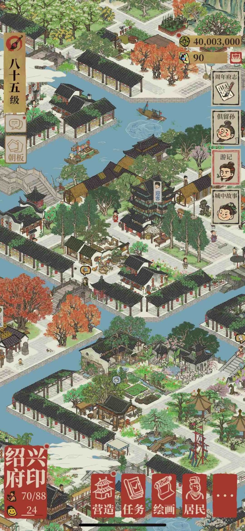 第二名《江南百景图》是一款古风模拟经营游戏,以明代江南为背景。玩家可以在游戏中规划建筑、安排居民起居,重现《清明上河图》般的市井繁荣画卷。其独特且治愈的国风美术风格,让玩家在游戏中感受到宁静与惬意。