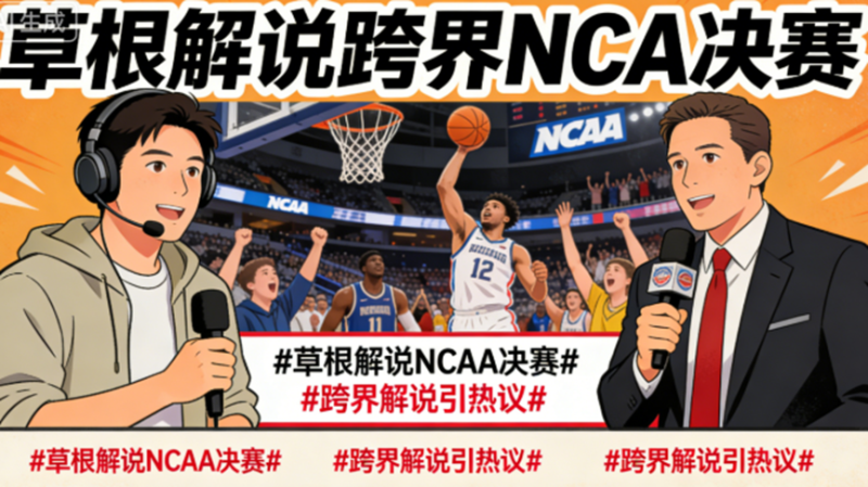 最近NCAA疯三决赛赚足了全网眼球,让不少人意外的是,本次受邀参与解说的不是大家熟悉的专业体育解说,而是走红网络的知名篮球评论人,这场跨界合作刚官宣就引发了大量讨论,等到正式开播后,相关话题直接刷爆了各大社交平台的热搜榜。